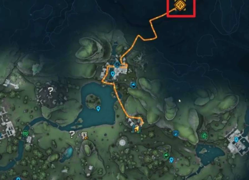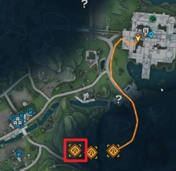 走出这个区域,打开地图,先往最右边的指引点走。