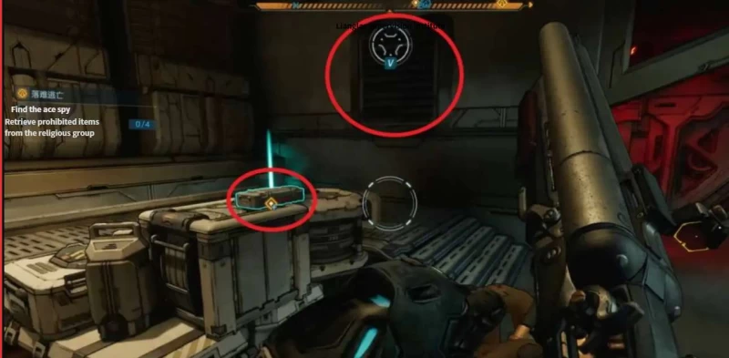爬一段墙往前走一段再右拐,就到了第三波刷怪的地方,这波怪数量不少,我是边打边退着清的。到黄色管道处左拐,进尽头的门里走楼梯上去,通道左边就能找到第三个违禁品,我找到的时候还挺有成就感,就差最后一个了。