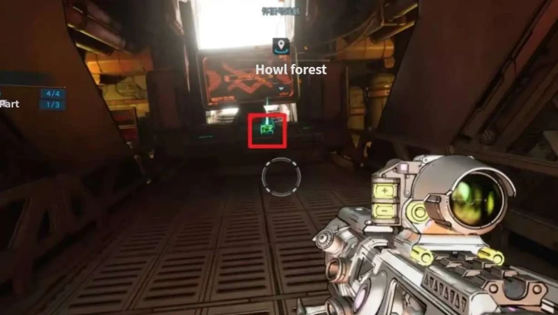 这里的敌人都聚集在一个房间里,我是先清完房间里的敌人再找零件的,怕找的时候被打扰。扫描零件就在房间中间的显示器前,很容易看到。