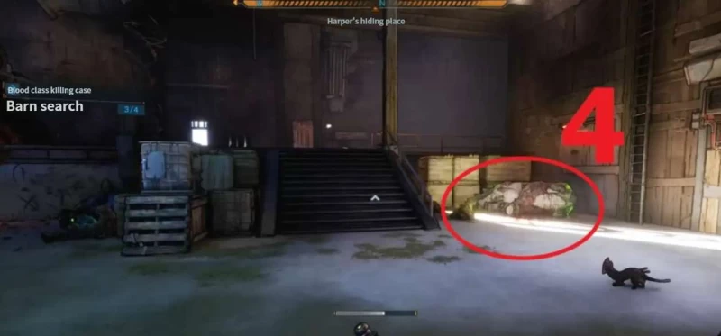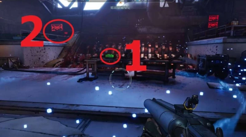 第一个和第二个线索很好找 —— 建筑里两侧各有一具尸体,正前方桌子上还有堆残骸,这俩就是前两个线索,扫一眼就能定位到;找第二个线索的时候别着急走,往左拐有个能打开的门,里面藏着个武器箱,白给的资源别错过,顺手拿了不亏。