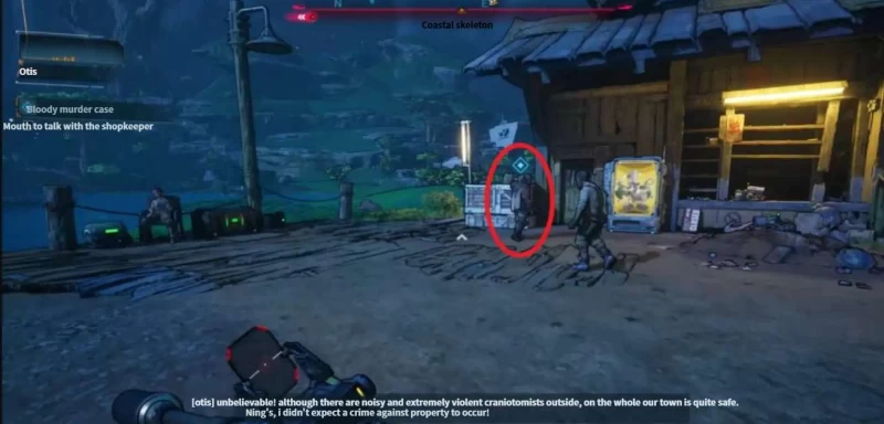 刚互动完别放松,马上会冲过来一群开颅者,必须把它们全干掉,不然没法继续走流程,清完开颅者,打开地图看新标记,往右侧的工具店走。